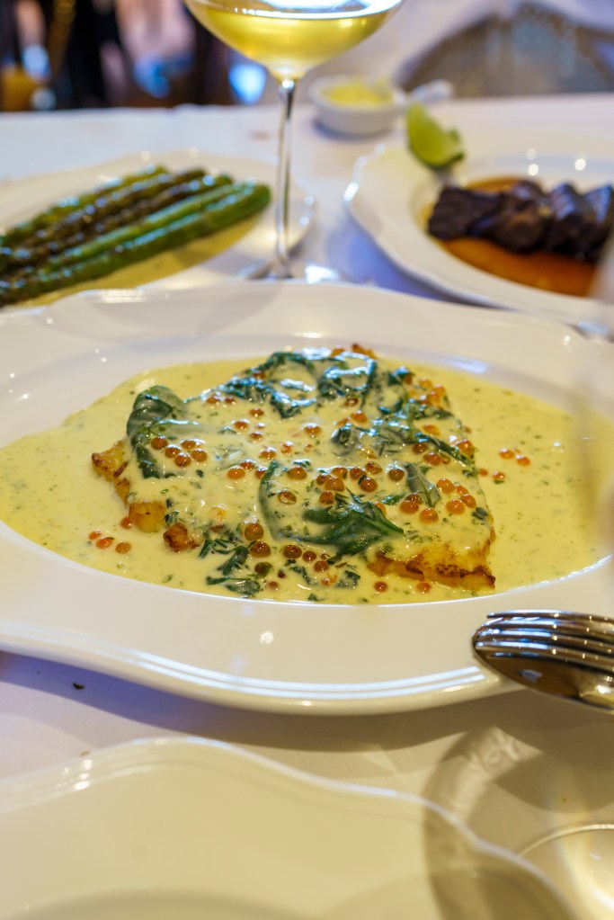 Ocean Trout with cream sauce, Warragal Greens & Trout Roe