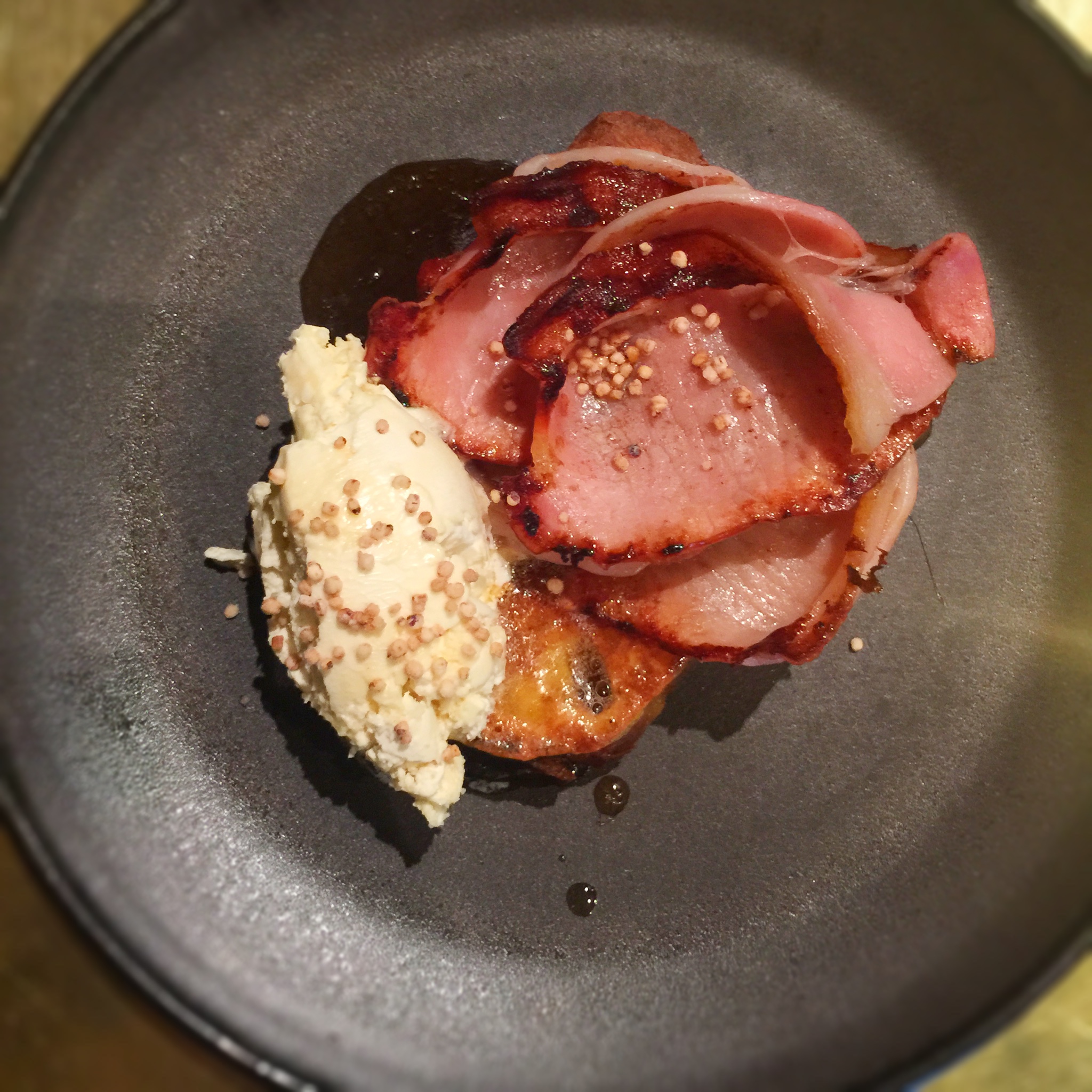 At Franklin we started with the Periwinkles, much better than my dad foraged for me once but with a texture I can not love, a bit testing on my gag reflex. The bone marrow #dumpling was a must try as I’m currently collaborating to get a dumpling onto a menu at a Sydney resto. It is not an Asian style dumpling though, more dough based. It is a tasty dish served in a delicate wild mushroom broth with tiny crisp grains that pop and add a surprising exciting element.