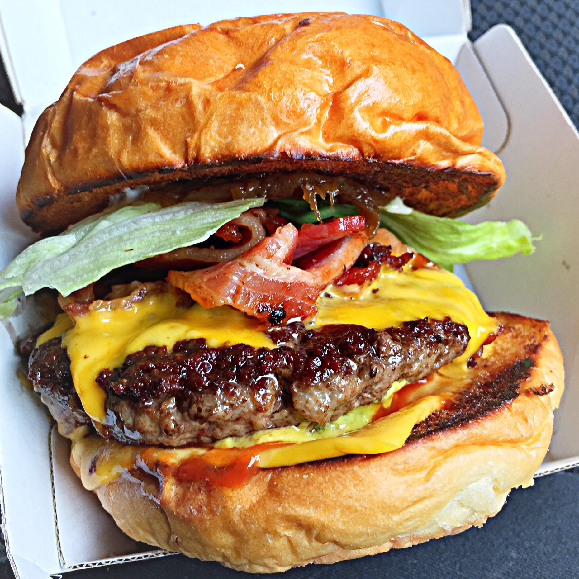 Dan’s cheeseburger from Lotus ( now The fish shop ) was my number one. A humble looking specimen, slight doubt at first sight if this burger is capable of merely quashing a mans appetite? The weight and density of the patty, encased in a pillow soft bun, with bacon, American cheese and onions in… got to read his book for that secret, is a master in deception. I think 11 was the record at the burger eating comp in in 2012. That does not sound like much in the Man V food arena but that is a testament to magnitude of this burger.