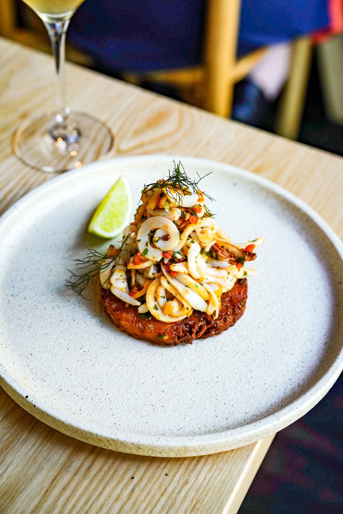Spicy crumbed sweetbreads pack some heat. Deep fry is a great way to cook these little nuggets, they arrive on a plate loaded with chilli. Luckily, we were warned about the license restriction after 10pm and quickly ordered more wine,